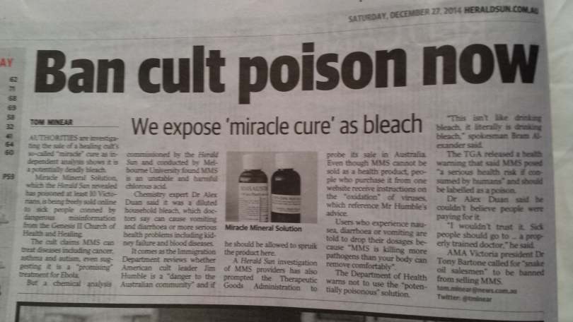 Australian responds to Herald Sun's Genesis II Church "MMS is Snake oil, Magic potion, Bleach" smear article