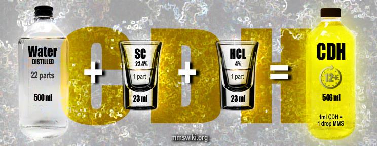 There has been an ongoing debate regarding how many drops of MMS equals 1ml of the newly discovered CDH. In over the many years of trying various ways of taking MMS, we finally began to realize that the MMS drops turning dark brown, was not concentrated chlorine dioxide as we always thought. The chemistry of it will be explained in the book, but that brown stuff is sodium chlorite, and sodium chlorite can go deeper into the body than chlorine dioxide, and then it turns into chlorine dioxide while deep in the body where it destroys pathogens. Therefore, in consideration to the potency and full potential of MMS, 1 ml of CDH or CDS is closer to 1 drop of MMS.