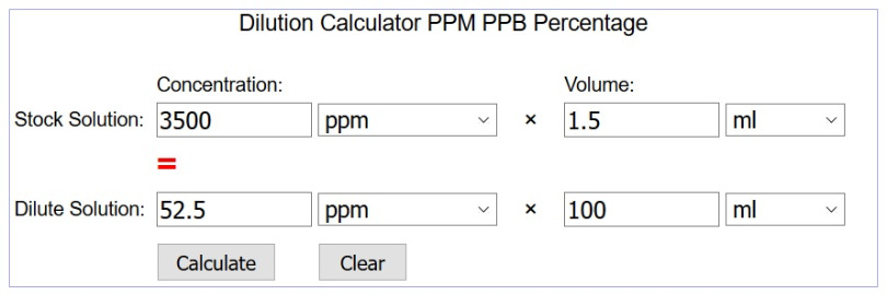 If the above is correct, I could then add 35ml of water or saline solution to that ml of CDH and get a 100ppm solution ?