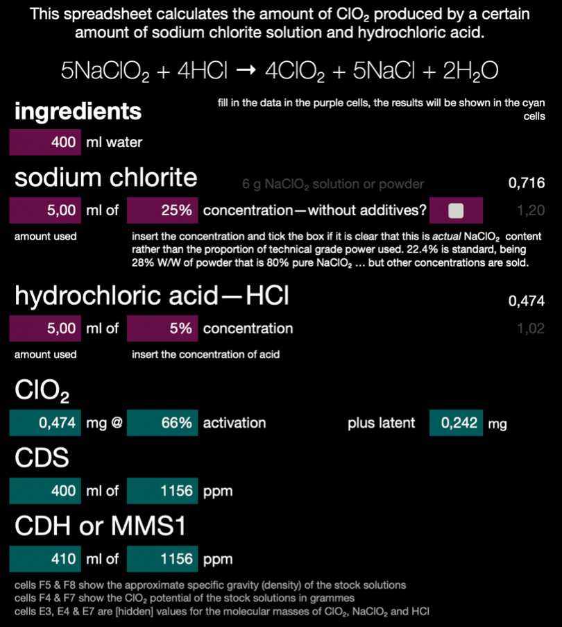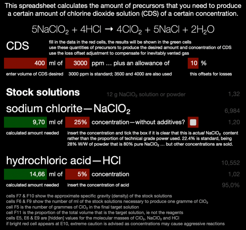 Using the CDS Wizard , to produce 400ml of CDS using the precursors that you have, you will need about 10ml of NaClO₂ and almost 15ml of HCl: