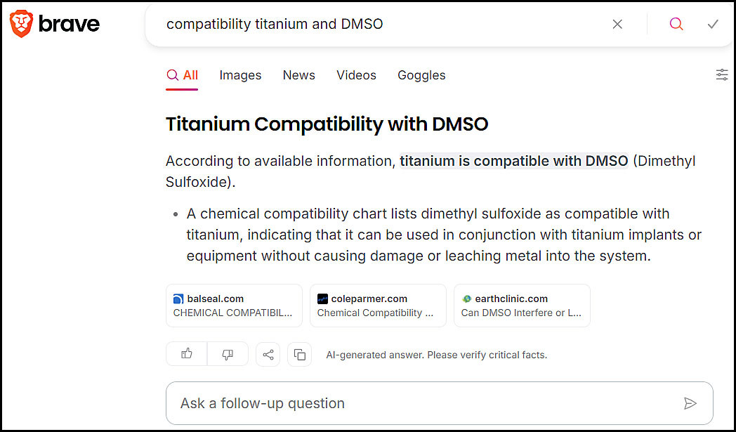 Replied by CLO2 on topic DMSO topically near a titanium hip replacement