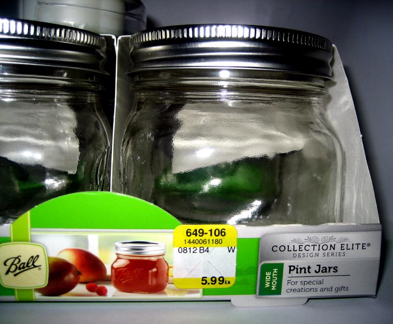 Arrow, this is what I purchased; set of 4 Ball 500 ml wide-mouth Elite Collection. The shape is important, almost a cube and not tall, with a wide mouth. Note the price! When I say the set cost $5.00, I mean the set of three items cost $5.00; 500 ml jar, cap & candle holder.