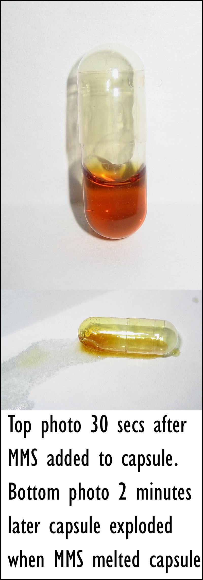 If I had swallowed the capsule right after filling it with MMS, I am sure there would not have been a problem.
