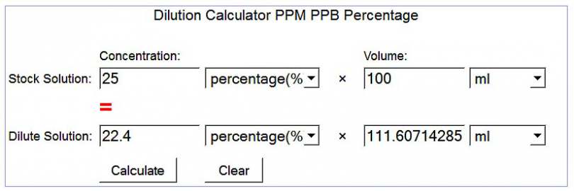 The 22.4% solution would be 111.6ml and 100ml of that is the 25% SCS, so you will need to add 11.6ml of distilled water to the 100ml of 25% SCS to arrive at a total of 111.6ml of 22.4% SCS (MMS).