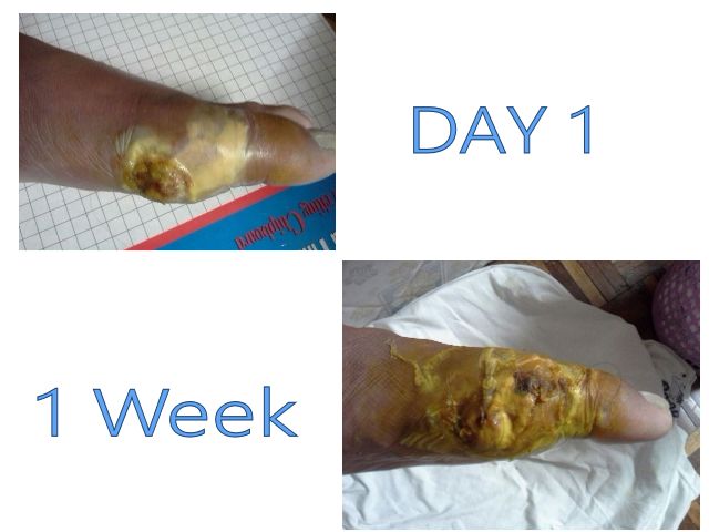 Wow Edwin! That's a lot of healing progress in just 1 week. Are you applying any CDH to the wound externally?