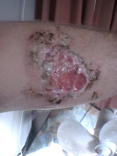 Wound on arm healing well with Vaseline and colloidal silver, bandaged. Still not working for fear of infection. Wound has character of a burn but healing speed says otherwise. Severe burns which I have had take months to heal. b
