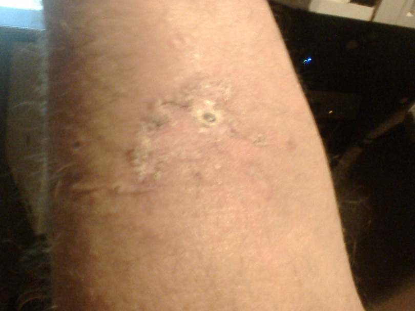 At this point in the progress I am totally sick of it all, had enough and am thoroughly pissed off. Wound has healed accept for area in middle still suppurating dam it.