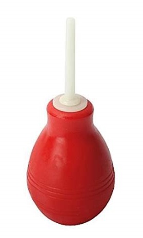 You got me thinking though, about enemas. I normally think of an enema as a bag or bucket of a lot of water (many cups) which makes me think it's too messy and difficult (but still not as difficult as doing an IV of course). But with this we don't need such a large volume of water (nor would we want it I think). With this we could put 2ml of CDH into 248ml of water (250ml total) into a small bulb enema applicator (see picture below) and end up with only 28ppm CLO2. This should be perfectly fine for our bottoms to be able to handle, even a few times a day - I should know because I've been brushing my teeth with 50ppm CDH water twice a day for about the last 5 years now.