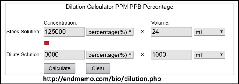 To make 1000 ml (1 liter) of 3000 ppm CDS, you would add 24 ml of the stock solution to 976 ml of distilled water. Looks like you have a life-time supply!