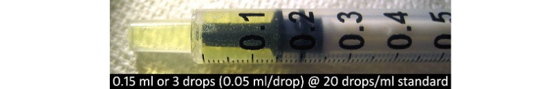 So, 2.5 drops of 24,000 ppm CDS would contain the same amount of CLO2 as 1 ml of 3000 ppm CDS. 2.5 drops = 0.125 ml and can easily be measured using a calibrated 1 ml syringe.