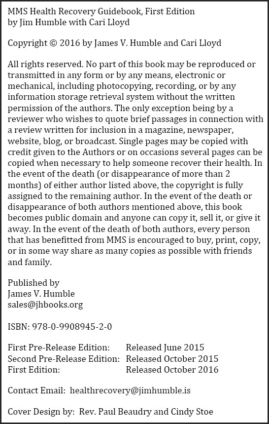 COPYRIGHT -for the book: MMS Health Recovery Guidebook