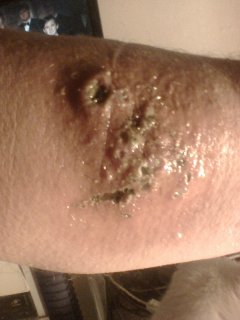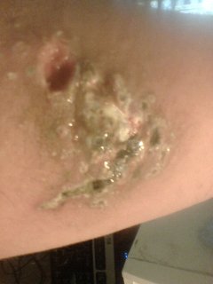 brianmorri wrote: 2nites phot shows much progress Have emptied a lot of puss from region often containing small white hard centers. Showed and put DMSO and straight sodium chlorite on area and repacked with salve. Painful with strong chlorine smell suggesting wound activating sodium chlorite into MMS. Lot less pain and nausea now. Wish I new what was going on with new satellites appearing. b
