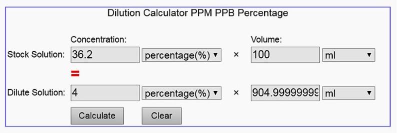 If I have 20% HCl and want 100ml of 4% strength final dilution, should I mix 20 ml of HCl and 80 ml of distilled water?