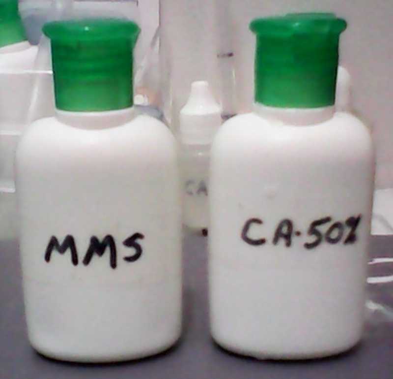 -Put 8.5ml of MMS into the glass bottle that you will be storing the final mixture in.