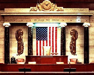 Attached photo of US Senate with Fascist symbols -on each side of the flag.