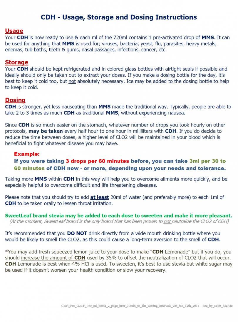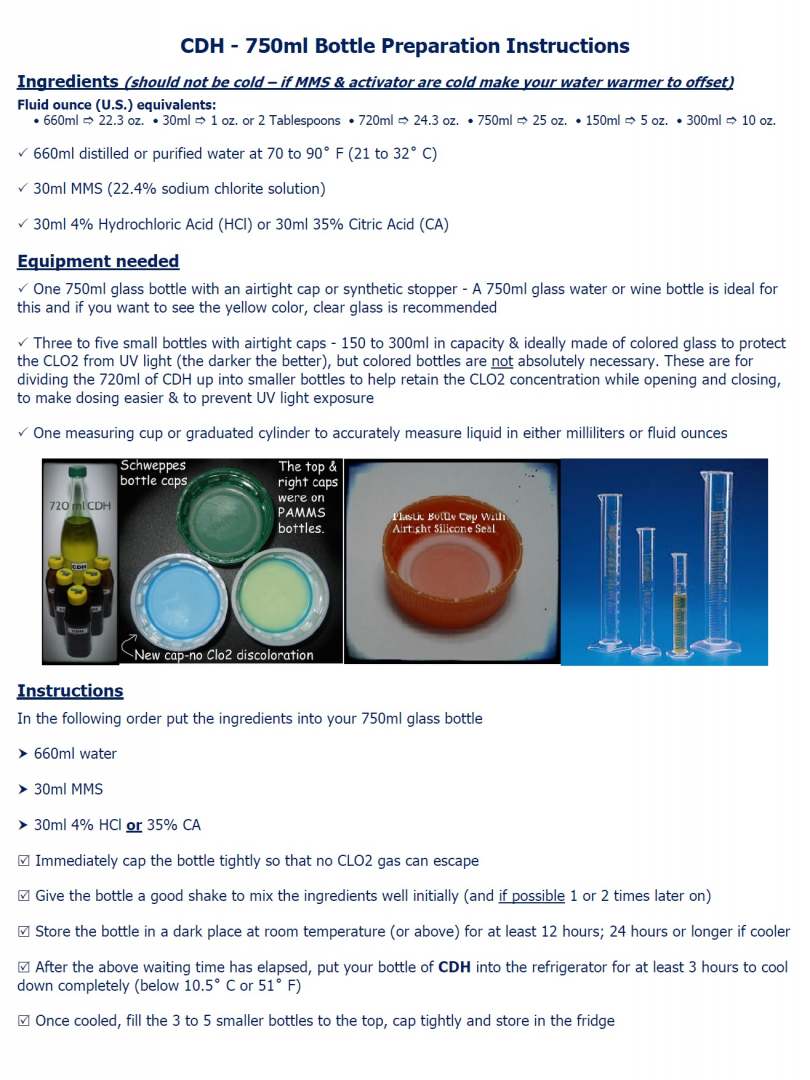 - Every ml of CDH contains 1 drop of MMS, so 1 drop of MMS = 1ml of CDH