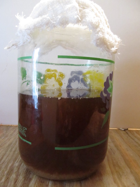 --put into 1 gal. ice tea jar with cheese cloth over top.