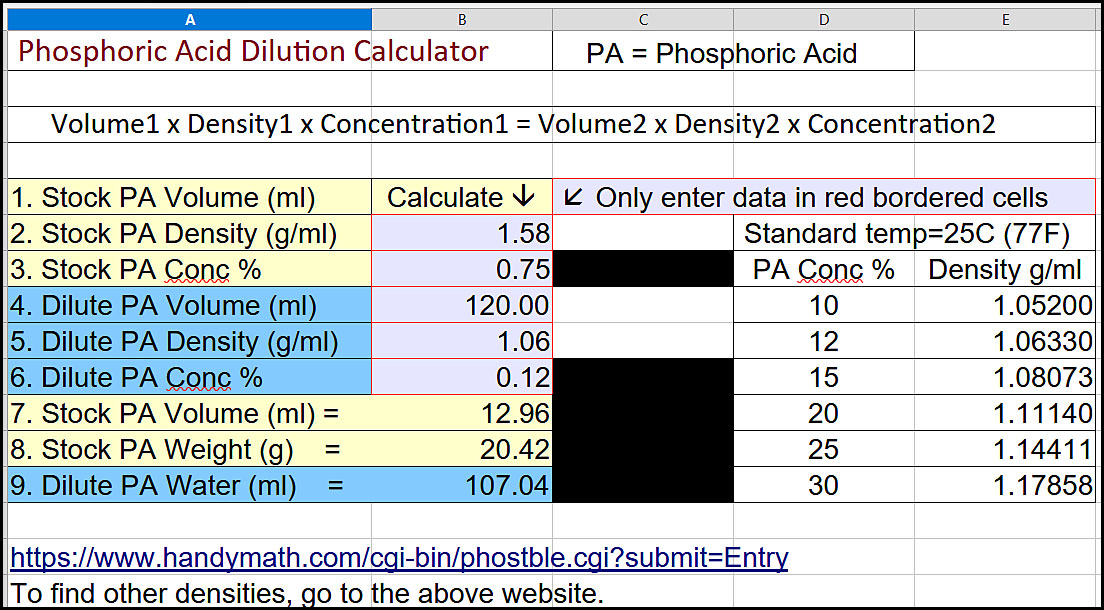 Hi, I am trying to find a phosphoric acid dilution calculator that was mentioned in universal antidote series but it goes to telegram and my telegram is not working . could someone please post a link to another calculator? Are there any food grade phosphoric acid brands that you prefer? I know charlotte has done calculations for phosphoric acid if you can point me to it appreciate it. ...also I only can find phosphoric acid 85% so wondering what are calculations to dilute this....thanks