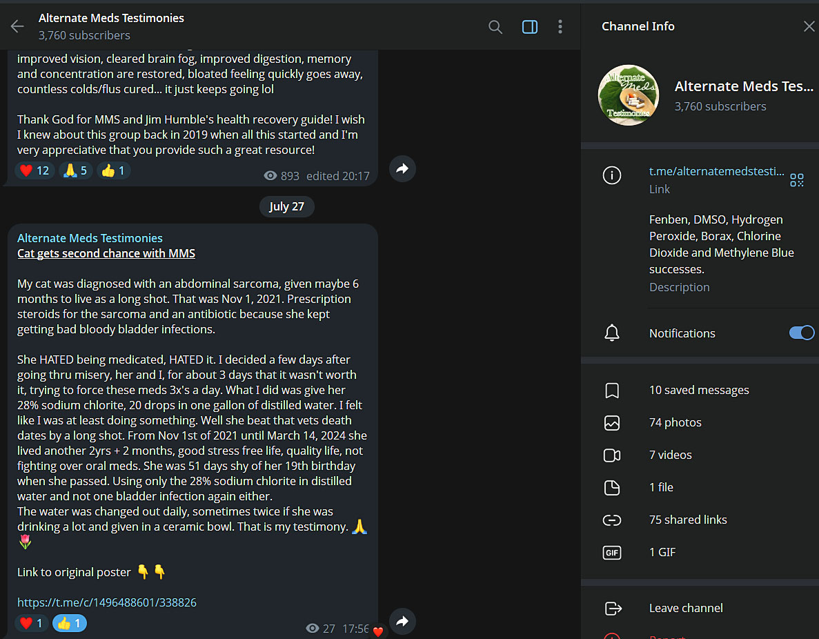 Do you know that one billion people use Telegram everyday? That is 1,000,000,000 people. Huge. There must be at least 100 CLO2 channels and groups, both public and private, on Telegram. I have a private channel and group on Telegram. I spend most of my day on Telegram posting CLO2 info and answering questions. Tara does the same, but in many more groups than me.