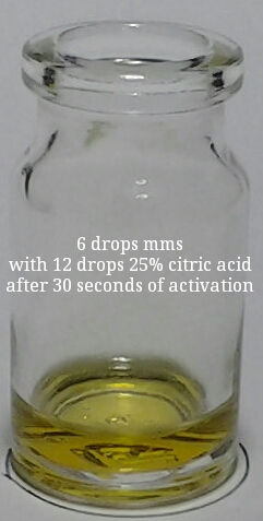 That will be interesting to see how this method works with lemon juice. My first reaction, after seeing JB13's activation times chart was NO WAY, because lemon juice is such a slow activator. Then I remembered though, that you will be allowing this to activate for hours instead of minutes and with that in mind, the lemon juice should have enough time to fully activate the raw mms (as long as it has enough "oomph" or activating power in it). What would be really interesting would be to test it with CLO2 test strips. In lieu of that though, if you still feel some throat irritation, that would be a pretty good indication that the ppm is high and the other thing would be if it doesn't make you nauseous. Because if you don't get nauseous, then you've probably fully activated the raw mms, or at least almost all of it. Anyway, it will be interesting to see how it goes with the lemon juice.