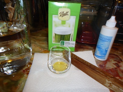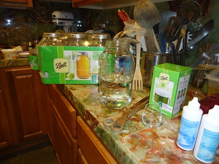 Set up for the pint jar - I use separate syringes for the MMS and for the CA so that they don't contaminate the storage fluids.