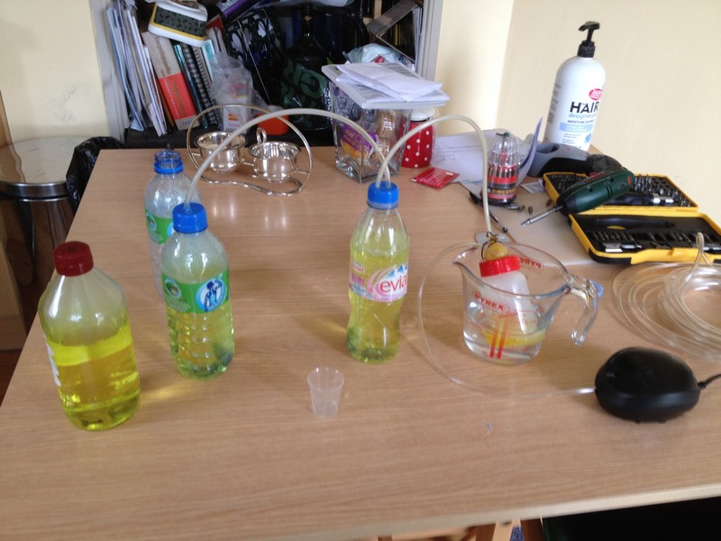 Maybe one of the math wiz guys or gals can suggest the size of dilution to use the 1-10 strip. My guess is that it's going to be big - the testing method on the 3000 ppm/L gives you 8 ppm per drop equivalent - so you're going to need to test for 1 drop equivalents on the 1-10 testing strip. (and I have 2 containers of the 1-10 strips here, too, before I realized I needed the wider range